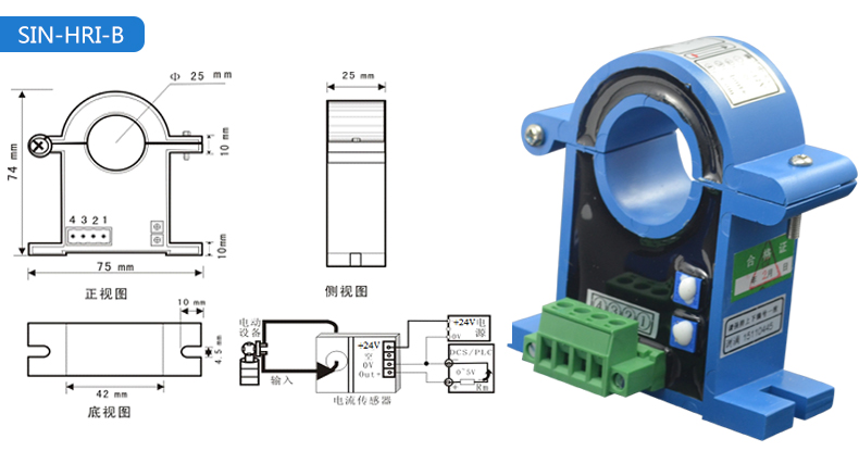 電流變送器可以直接將被測主回路交流電流或者直流電流轉(zhuǎn)換成按線性比例輸出的DC4~20mA(通過250Ω 電阻轉(zhuǎn)換DC 1~5V或通過500Ω電阻 轉(zhuǎn)換DC2~10V)恒流環(huán)標準信號,連續(xù)輸送到接收裝置(計算機或顯示儀表)。