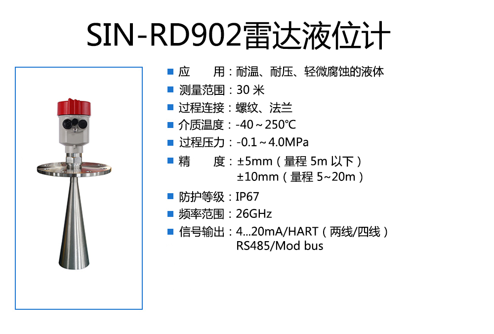 90 系列傳感器是 26G 高頻雷達式物位測量儀表,測量最大距離可達 80 米。天線被進一步優(yōu)化處理,新型快速的微處理器可以進行更高速率 的信號分析處理,使得儀表可以用于各種強腐蝕性液體的測量。