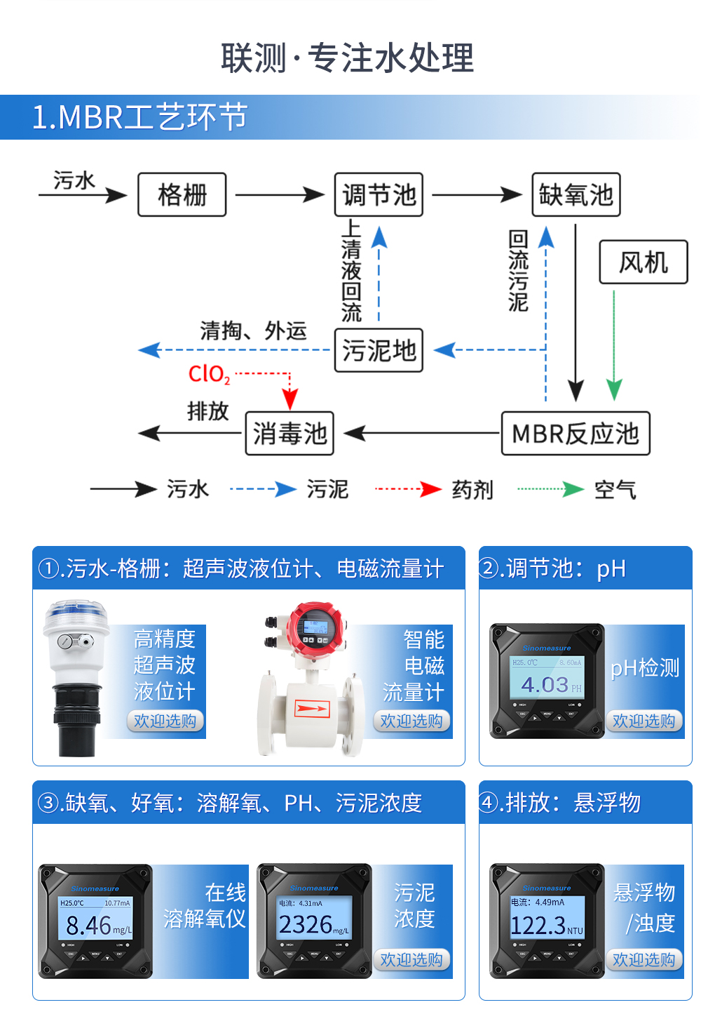 聯測_SIN-PTU300三個量程段規格,分別為0-1NTU量程段,0-20NTU量程段,0-100NTU量程段